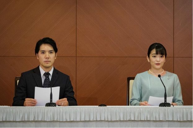 写真)眞子さんと小室圭氏の結婚記者会見(2021年10月26日 都内)