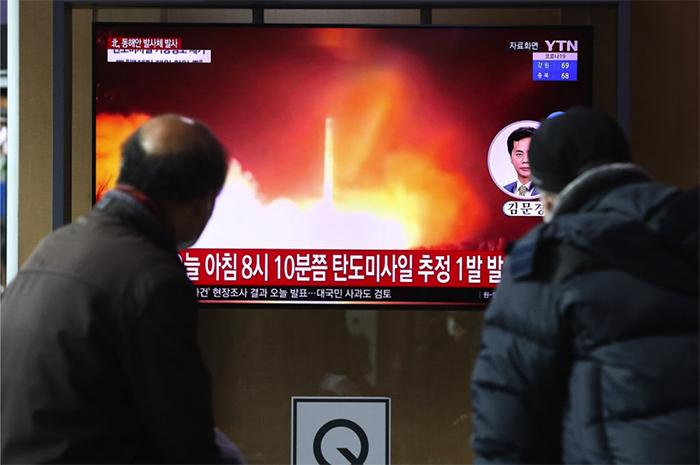 ▲写真 北朝鮮のミサイル発射のニュース映像を見るソウル市民(2022年1月5日、韓国のソウル駅にて) 出典:Photo by Chung Sung-Jun/Getty Images