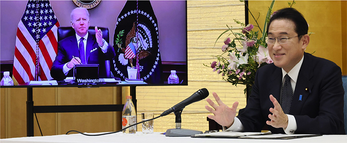 ▲写真 日米首脳会談(2022年1月21日) 出典:首相官邸