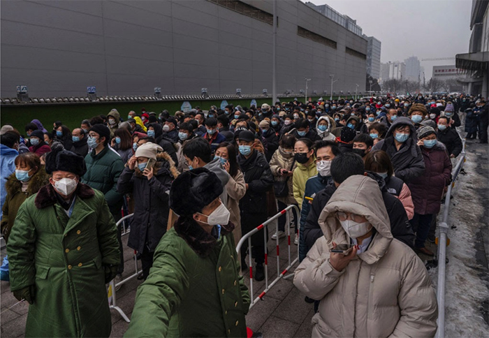 ▲写真 中国北京の集団検査センターで新型コロナウィルスの検査を受けに来た市民(2022年1月24日) 出典:Photo by Kevin Frayer/Getty Images
