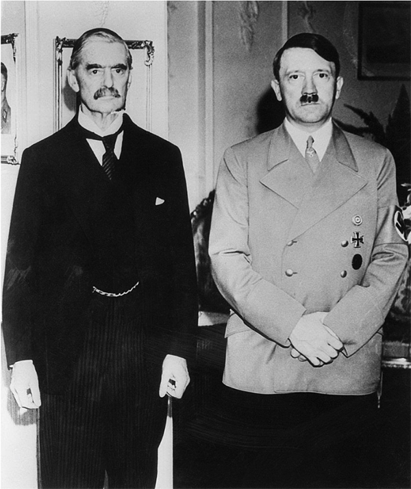 ▲写真 チェンバレン英首相とナチス・ドイツのヒトラー総統(1938年10月2日 ドイツ・ゴーデデスベルク) 出典:Bettmann/Getty Images