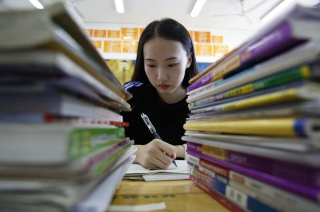写真)大学入試に向けた勉強をする学生(2018年 中国・山東省)