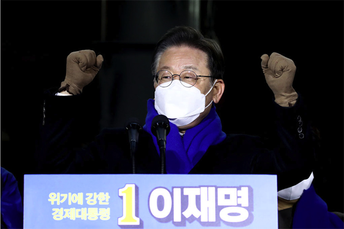 ▲写真 与党「共に民主党」の李在明候補(2022年2月15日 韓国・ソウル) 出典:Photo by Chung Sung-Jun/Getty Images