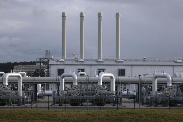 写真)ロシアからの天然ガスを海底ガスパイプラインで送る「ノルドストリーム2」の受け入れ基地(ドイツ・ルブミン近郊 2022年2月2日)。ウクライナ危機を受けてドイツ政府は承認手続きを停止した。