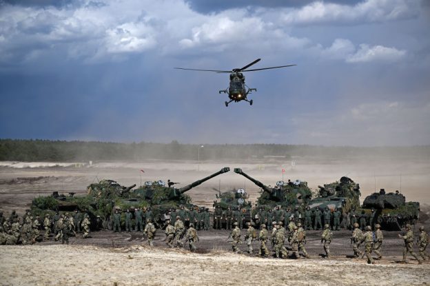 写真)ポーランドの第18機械化師団と米第82空挺師団による合同軍事演習 2022年4月8日 ポーランド、ノバ・デンバ