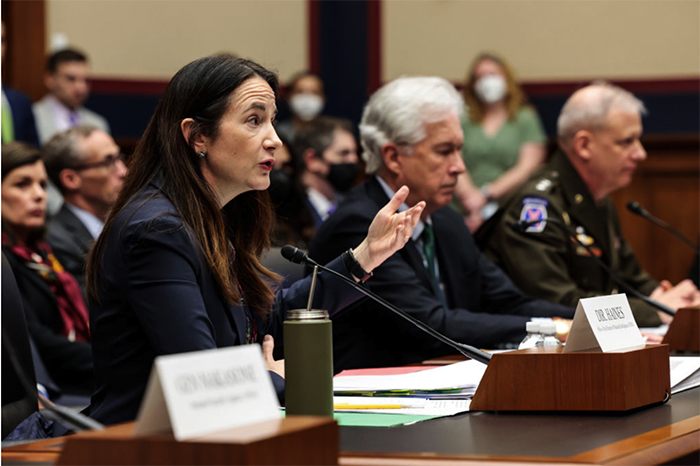 ▲写真 アメリカの下院情報特別委員会の公聴会で発言するバイデン政権の国家情報会議のアブリル・ヘインズ長官(2022年3月8日アメリカ、ワシントンDC) 出典:Photo by Anna Moneymaker/Getty Images