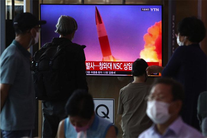 ▲写真 北朝鮮のミサイル発射のニュースをソウル駅の大型モニターで見るソウル市民(2021年9月15日、韓国・ソウル) 出典:Photo by Chung Sung-Jun/Getty Images