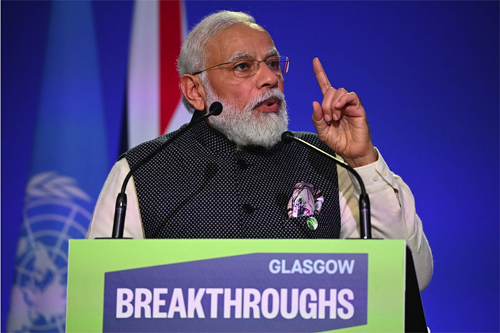 ▲写真 COP26でスピーチするインドのモディ首相(2021年11月2日 英グラスゴー) 出典:Photo by Jeff J Mitchell/Getty Images