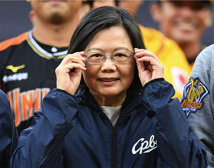 ▲写真 台湾プロ野球(CPBL)の年間王者を決める「台湾シリーズ」第1戦、中信ブラザーズvs統一ライオンズ戦を台中インターコンチネンタル球場にて観戦する、蔡英文総統。(2021年11月27日、台湾中部・台中市) 出典: Photo by Gene Wang/Getty Images