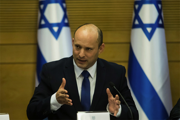 ▲写真 現政権発足後最初の会合に出席するベネット首相(2021年6月13日 イスラエル・エルサレム) 出典:Photo by Amir Levy/Getty Images