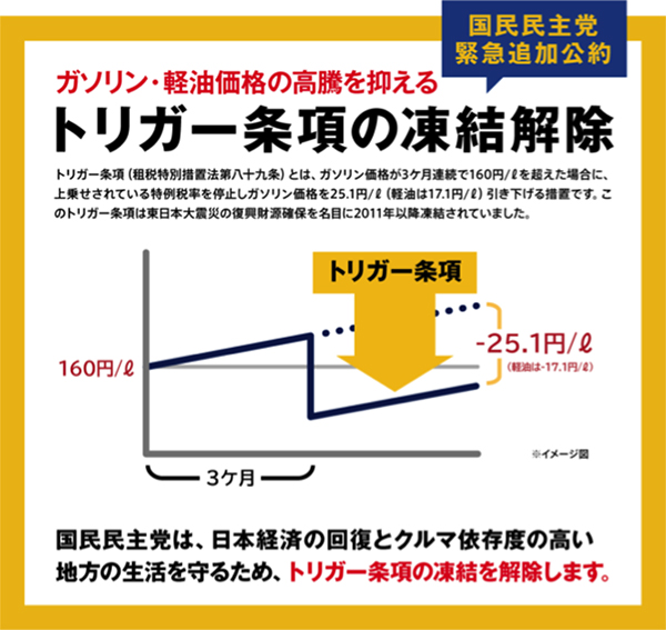 政府は、「トリガー条項」の凍結解除を見送り、検討継続となった。その意味で、トリガー条項の凍結解除は争点と言ってもいい。与野党で見解が違うからだ。
