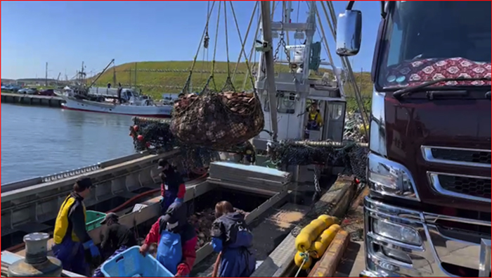 ▲画像 北海道・猿払村のホタテ漁の様子。YouTubeより(筆者提供)