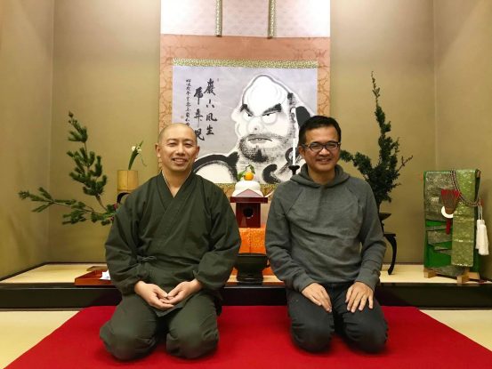 写真:全生庵の平井正修住職(左)と筆者。筆者提供。