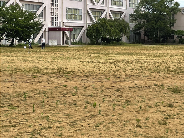 ▲写真 校庭に雑草がはえている旧平米小学校(2022年7月):筆者提供