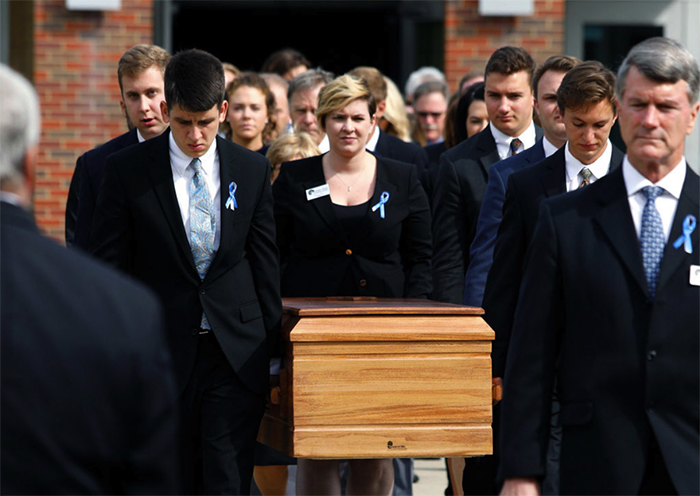 ▲写真 ワイオミング高校で行われたオットー・ウォームビア青年の葬儀。家族らに見送られて出棺する様子(2017年6月22日、オハイオ州・ワイオミング) 出典:Photo by Bill Pugliano/Getty Images