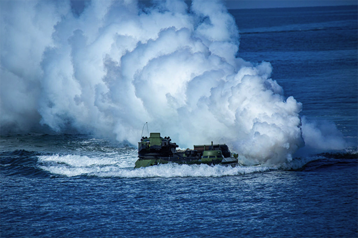 ▲写真 台湾の装甲兵員輸送車が漢光演習の最中に海を渡る(2022年7月28日)出典:Photo by Annabelle Chih/Getty Images
