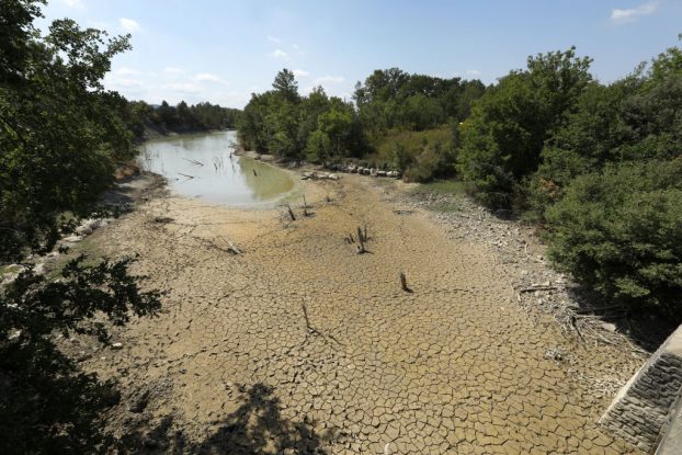 写真)暑さによって干上がったガードン川(2022年8月13日、フランス・アンデューゼ)