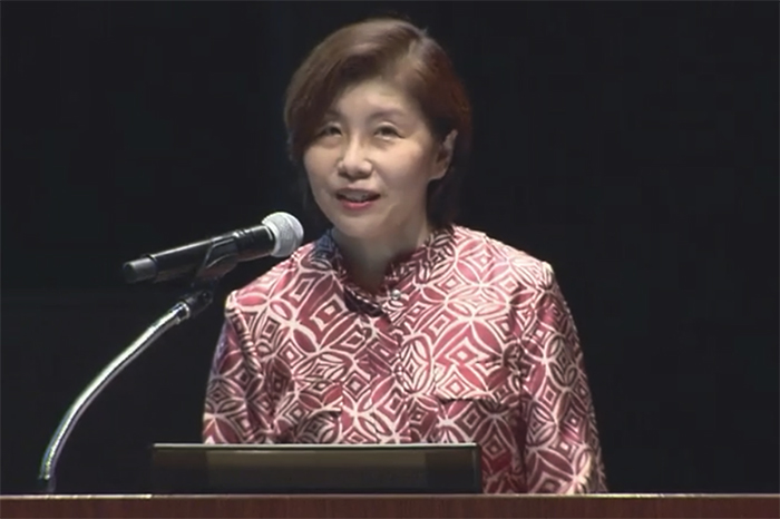 ▲写真 メットライフ生命保険チーフヒューマンリソーシズオフィサー執行役向井麗子氏(2022.09.19) 出典:日経が開催した「ジェンダーギャップ会議次世代につなげる、グローバルで活躍する女性リーダーたち」にてキャプチャー
