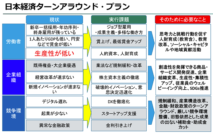 筆者は日本経済をターンアラウンドする「ターンアラウンド計画」を策定した(以下図)。