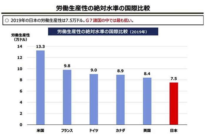 ・先進国の中で労働生産性が低い日本。