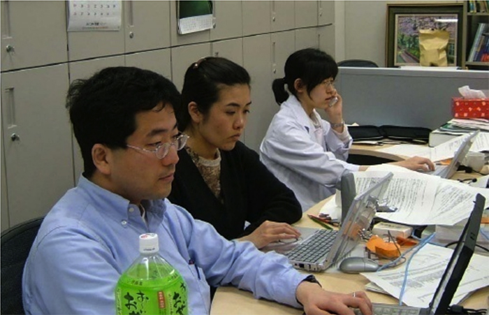 ▲写真1 東大医科学研究所の研究室での署名集計の光景。左から湯地晃一郎医師、濱木珠恵医師、松村有子医師(筆者提供)