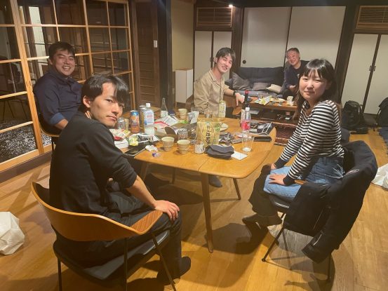 私を含め50代の3人と琥太朗君は11時を越えると寝てしまった。その後、若手4人は午前4時まで語り合ったという。