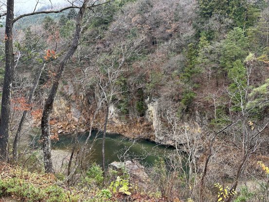 写真:客室のテラスから見える鬼怒川。緑色の川面が美しい。川のせせらぎが一日中聞こえ、その音で癒やされる。