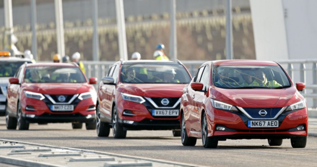 写真)日産「リーフ」を運転するウィリアム皇太子とキャサリン妃 2018年2月21日 英国・サンダーランド