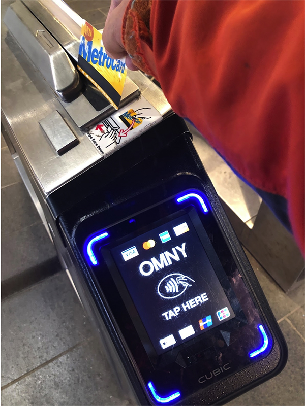 2020年、NYの地下鉄に「OMNY(One Metro New York)」というコンタクトレス(非接触)式の改札の新システムが、旧システムであるメトロカードに並行して、本格的に導入された。システムの完全移行準備が出来たのであろう。