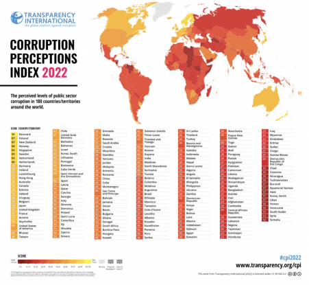 ・NGOトランスペアレンシー・インターナショナルが、2022年世界「腐敗認識指数」を発表。