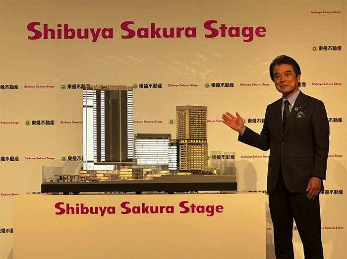 ▲写真 「Shibuya Sakjura Stage」の縮尺モデルを紹介する東急不動産株式会社 代表取締役社長 岡田正志氏 ⓒJapan In-depth編集部