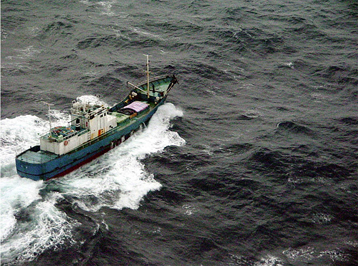 ▲写真 北朝鮮の工作船と思われる船舶 海上保安庁巡視船と戦闘になり、その後自爆し沈没。(2001年12月22日奄美大島の北西約155マイルの東シナ海)出典:Photo by Getty Images