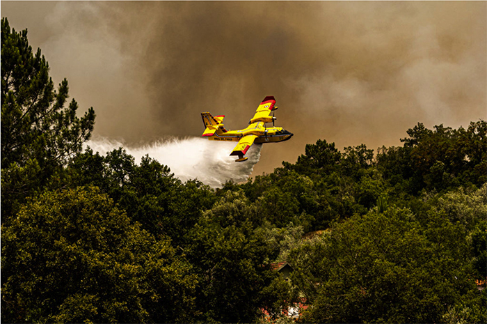 ▲写真 2022年7月、ポルトガルでの山火事の消火活動に参加するイタリアのCL-415消防航空機 出典:Photo by Octavio Passos/Getty Images
