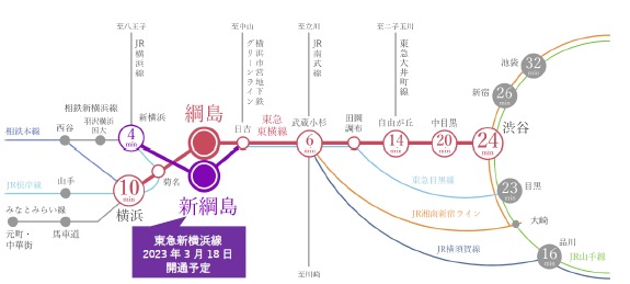▲図 「新綱島」駅周辺の路線図 出典:東急不動産