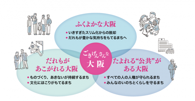 女性目線で新たな風を吹き込んでくれそうな期待感を醸成したものとなっている。「ごきげんさんで、ふくよかな、おおさかを作りたい」という心に届くキャッチフレーズ、優しい言葉、伝えようとする姿勢などなど。文体も非常にわかりやすく、優しい言葉使いで暖かさを感じる。素晴らしい。