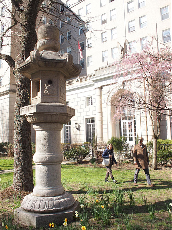 ▲写真 「Sakura Park」北側にある、東京都から贈られた石灯籠(筆者撮影)