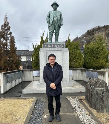 写真:浅野総一郎翁像(九転十起の像)生誕地の氷見市にて)筆者提供