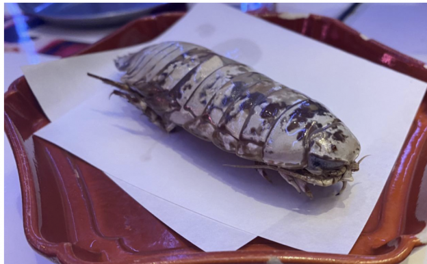 次に運ばれてきたのは「オオグソクムシの姿揚げ」。見た目こそ強烈だが、海老のような食感と味で、非常に美味しかった。塩味が効いていて臭みは全くない。口に運ぶのには相当の勇気がいるかもしれないが、是非試してみてほしい一品だ。