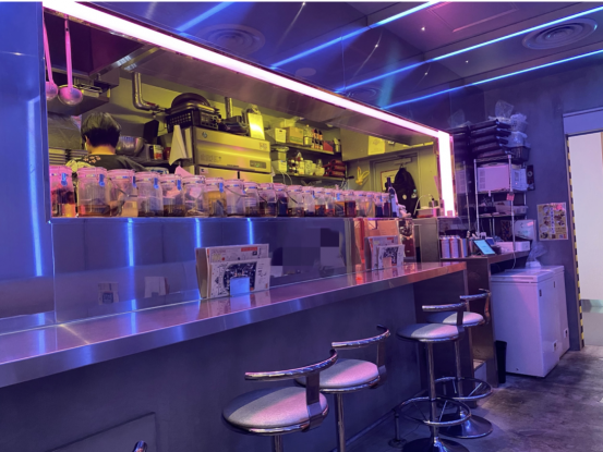 店内はネオン調で、おしゃれなバーのような雰囲気だ。マムシやゴキブリを漬けた酒がカウンターに並び、クマの骨やダチョウの卵などが客を出迎えてくれる。