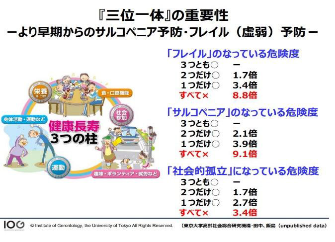 ▲図 「三位一体」の重要性 出典:「柏フレイル予防プロジェクト2025」柏スタディから見えてきたもの