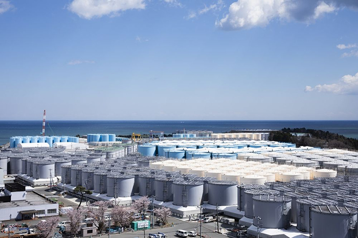 ▲写真 福島第一原発構内に並ぶ処理水タンク群 出典:経済産業省
