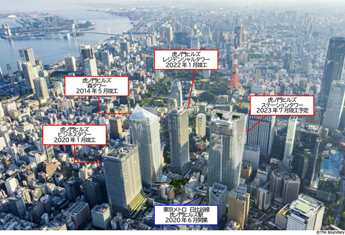 2014年開業の「虎ノ門ヒルズ森タワー」に続き、「虎ノ門ヒルズビジネスタワー」(2020年)、「虎ノ門ヒルズレジデンシャルタワー」(2022年)と順次開業し、今回、「虎ノ門ヒルズステーションタワー」の開業をもって、「国際新都心・グローバルビジネスセンター」形成に向けてハイピッチで拡大してきた区域面積約7.5ha、延床面積約80万m²の「虎ノ門ヒルズ」が完成する。