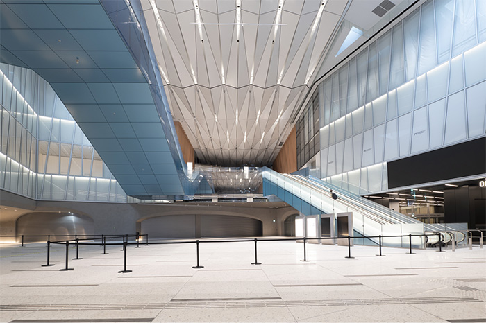ユニークなのは、地下1階部分に位置する地下鉄駅のホームからガラス越しに、地下2階のアトリウムを見下ろすことができることだ。