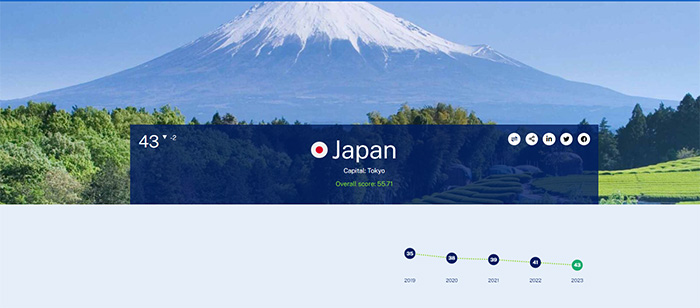 前年より2つ順位が下がって43位となってしまった日本。2005年の調査開始以来最低の数値です。客観的なデータなのでこれを真正面に受け止めるべきでしょう。