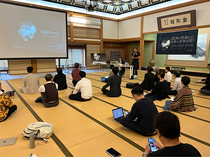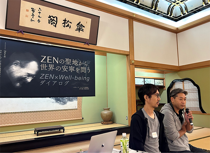 題して「ZENの聖地から世界の安寧を願う ZEN×Well-beingダイアログ」。話題は禅から人工知能(AI)の将来にまで広がり、外は霧雨の中、思わぬ熱い展開をみせた。