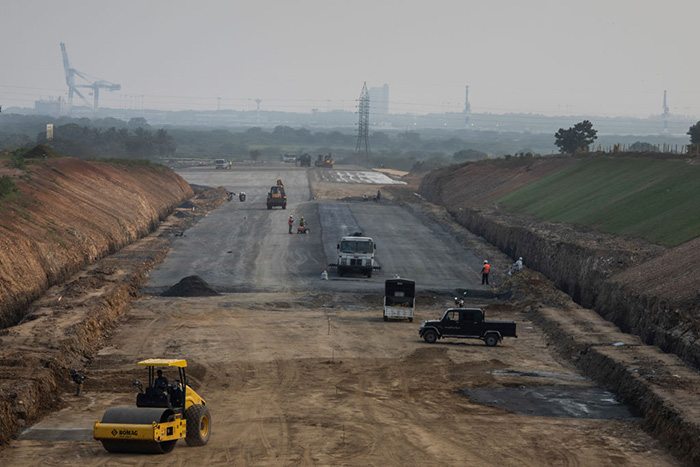▲写真 マータラからハンバントタまでの南部高速道路の延長工事の様子。 一帯一路構想の枠組みに基づく主要インフラプロジェクトの一つ(2018年11月16日、スリランカ・ハンバントタ)出典:Paula Bronstein/Getty Images