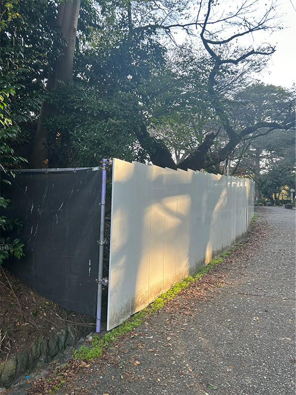 ▲写真 古城公園の工事用のバリケード(執筆者提供)
