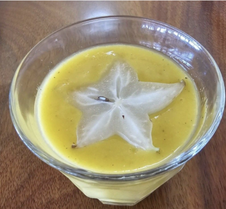 マンゴー(7-8個)、スターフルーツ (1個)、 レモン汁 (酸味調整)、生姜 (少々)、セロリ (½本) 、水150ミリー が含まれていた。