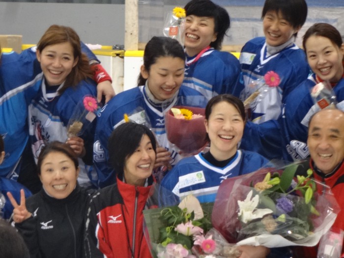監督の八反田孝行は「チームが勝てなくて、辛かった時もチームを支えてくれた」と、挨拶。そして、笑顔の胴上げ。職場の同僚が用意した紙テープと花束も舞った。その様子を母、幸子もこみ上げるものを抑えながら、見守った。「陽子、本当にありがとう」