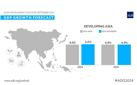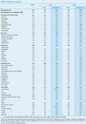 図表2では、2004年4月段階と9月段階の数値を表記しており、2024年9月段階の成長予想値は2024年が5.0%、2025年は4.9%としている(アジア開発銀行の資料では、発展途上国でなく、開発途上国としているが、これは財務省と外務省の‶シマ争い〟を反映したもの。意味は同じ)。